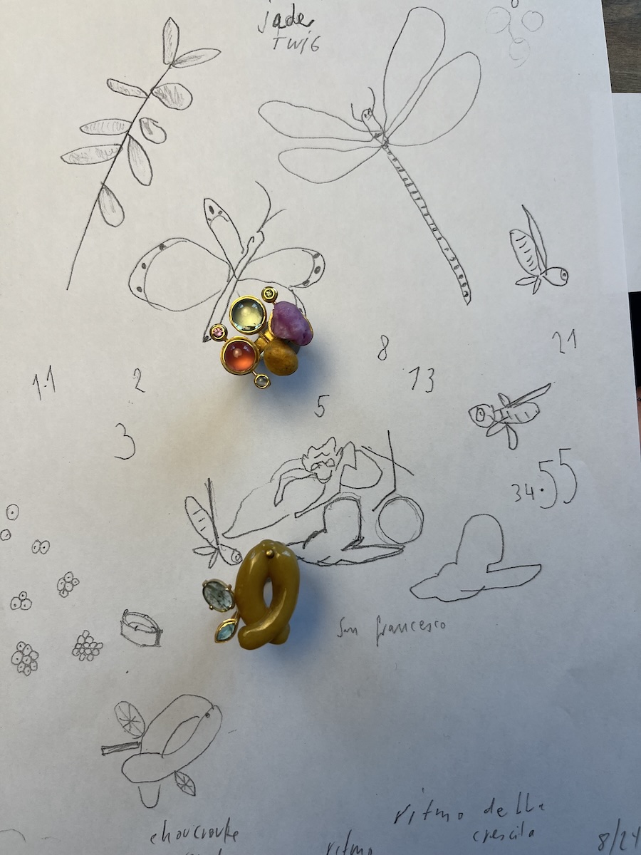 i rings on drawing 2025, gold 900, coloured stones